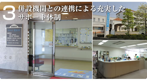 | 協力医療機関 | 医療法人社団東山会 調布東山病院 医療法人社団永寿会 三鷹中央病院 医療法人社団大坪会 北多摩病院 医療法人社団林会 林クリニック 内田歯科医院 鷹の台歯科医院(訪問) |