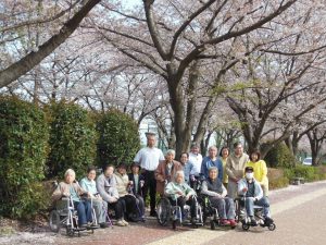 先日、通所リハビリでは、調布飛行場の桜を見に外出してきました。